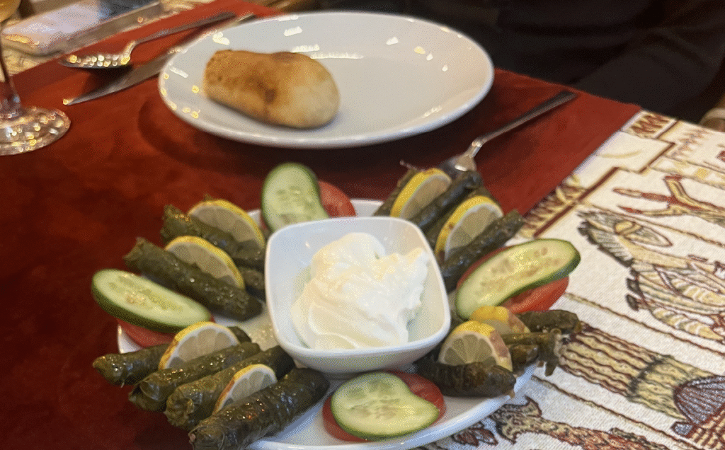 口に入れると、ぶどうの葉の酸味とほのかな渋みがまず広がり、そのあとにハーブの香りと具材の旨みがやってきます。日本人からするとちょっとエキゾチックですが、ハマる人はとことんハマる味。